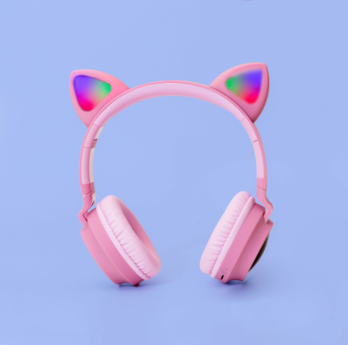 Wireless Ακουστικά Stereo Hoco W27 Cat ear Ροζ 300mAh Micro SD και AUX